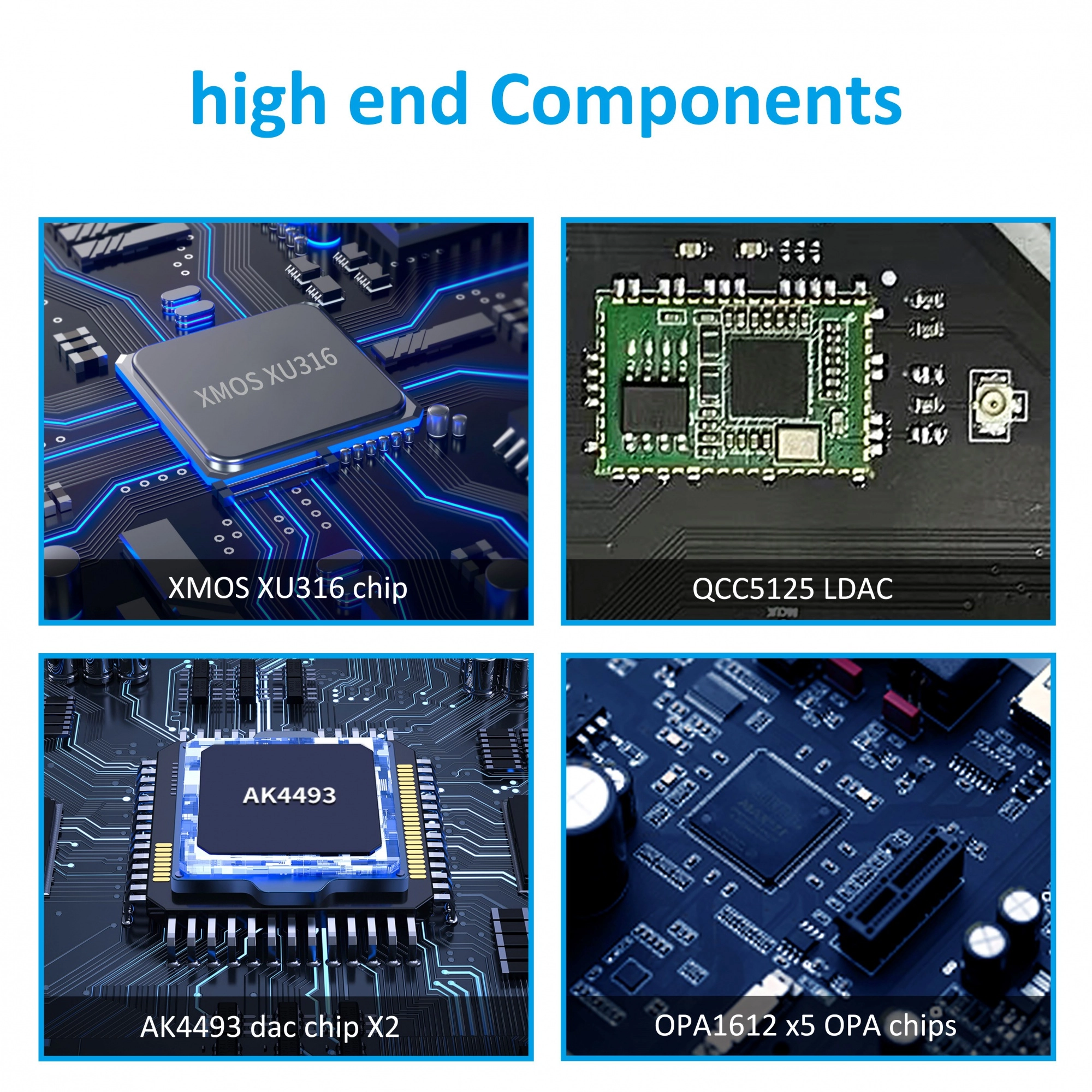 В основі DA06 лежать два чіпи AKM4493SEQ (dual) та USB-інтерфейс на XMOS XU316, що дозволяє підтримувати PCM до 32-біт/768 кГц та DSD512. Балансні XLR-виходи забезпечують широкий динамічний діапазон і низький рівень шуму, рівень SNR досягає 120 дБ. Bluetooth-модуль QCC5125 версії 5.1 підтримує кодеки LDAC, aptX HD, AAC і SBC для бездротового відтворення.