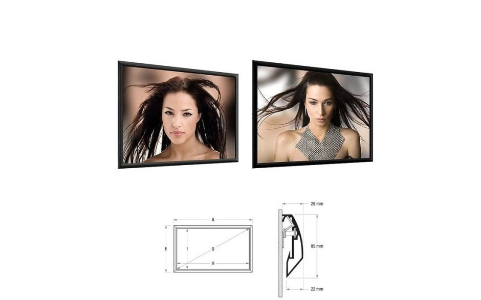 Натяжний екран на стаціонарній рамі для домашніх кінотеатрів, аудиторій та конференц-залів. Полотно Reference White забезпечує точну передачу кольорів і рівномірну яскравість, а оксамитова чорна рамка підвищує контрастність зображення. Легко збирається та монтується на стіні.