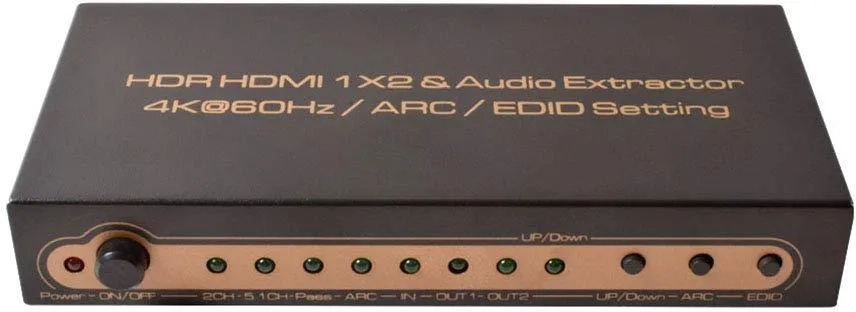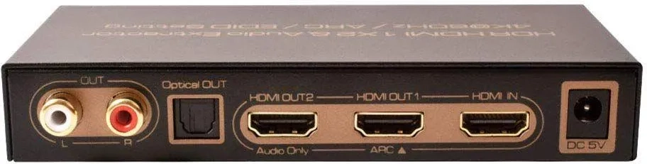 Розгалужувач HDMI 1×2 з аудіоекстрактором AirBase K-SP124KA V2.0, 4K60 HDR, ARC, Toslink/RCA