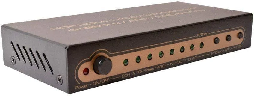AirBase K-SP124KA V2.0 - HDMI спліттер 1×2 з функцією вилучення аудіо (Audio Extractor). Пристрій приймає один сигнал HDMI і видає: