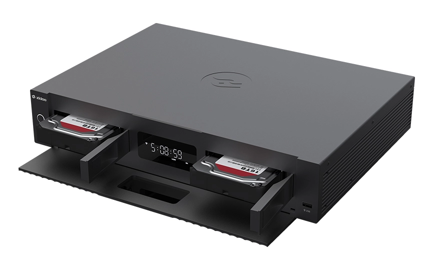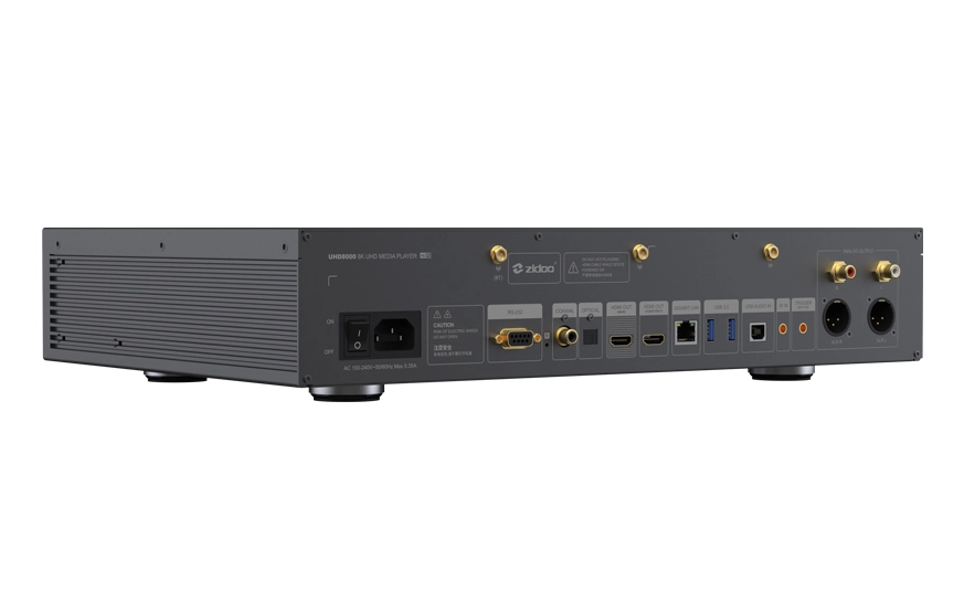Zidoo UHD8000 - флагманський Hi-Fi медіаплеєр 8K 2024-2025 року на процесорі Amlogic S928X-K. Оснащений ЦАП ESS9069Q + XMOS, симетричними XLR-виходами і подвійними відсіками для 3,5" HDD (до 32 ТБ сумарно). біт. Два HDMI-виходи (відео + аудіо окремо), Wi-Fi 6, Bluetooth 5.2.