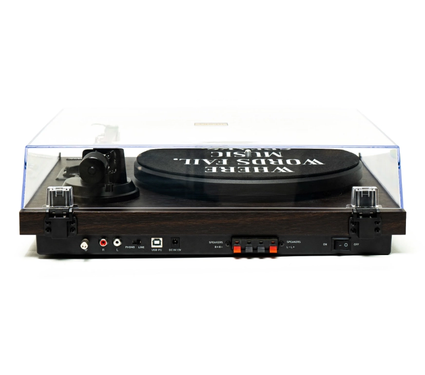 Перемикаємий вихід Phono/Line забезпечує гнучкість підключення до різних аудіосистем. Наявність Bluetooth дозволяє підключати смартфони та інші пристрої, а USB-порт відкриває можливість оцифрування вінілових записів.