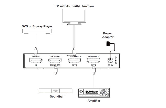 Цей 4K HDMI ARC/eARC аудіоадаптер здатний виводити звук Dolby Atmos із зовнішнього HDMI-джерела на системи з підтримкою eARC/ARC.