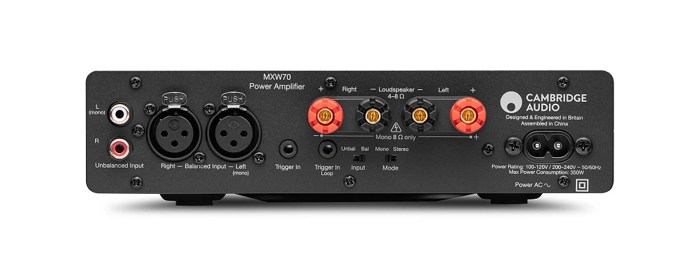 Cambridge Audio MXW70 – це кінцевий (силовий) підсилювач потужності, призначений для стереофонічних систем із пасивною акустикою. Він посилює лінійний сигнал від попереднього підсилювача, мережного програвача, ЦАП-конвертера або іншого джерела рівня, достатнього для управління колонками.