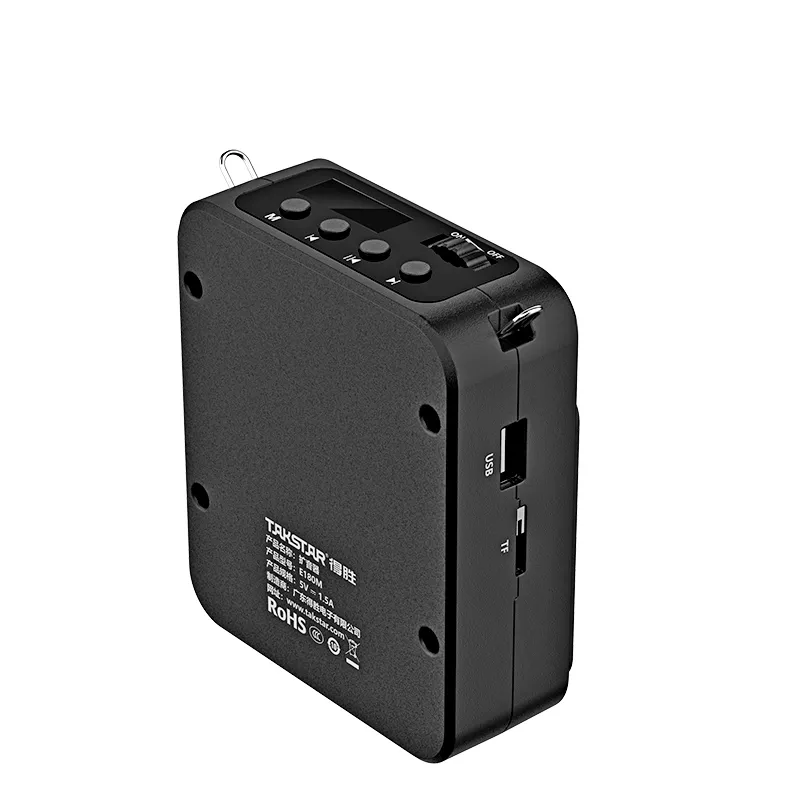 Такстар E180M Black - портативний провідний підсилювач голосу потужністю 10 Вт, призначений для викладачів, гідів, інструкторів та промоутерів. Забезпечує гучну та розбірливу мову без навантаження на голосові зв'язки. Оснащений вбудованим акумулятором 2000 мА·год з часом до 20 годин, підтримкою USB/TF-карт і AUX-входом. Підтримує функції медіапрогравача. Компактний корпус можна носити на поясі або через плече. У комплект входить головний мікрофон, ремінь та USB-кабель.