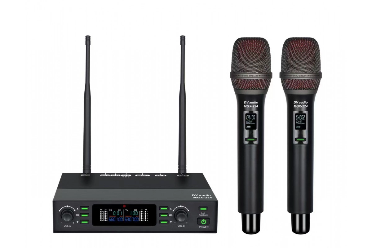 DV audio MGX-224 - це двоканальна радіосистема з ручними мікрофонами, призначена для використання в караоке-клубах, конференц-залах, на сцені та під час проведення заходів. Забезпечує стабільну передачу звуку без дротів.