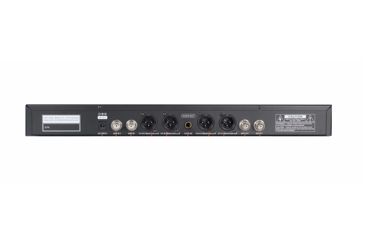 Система оснащена чотирма незалежними каналами з можливістю вибору частоти 4×100 каналів. Підтримує одночасну роботу до 12-16 мікрофонів в одному приміщенні без взаємних перешкод.