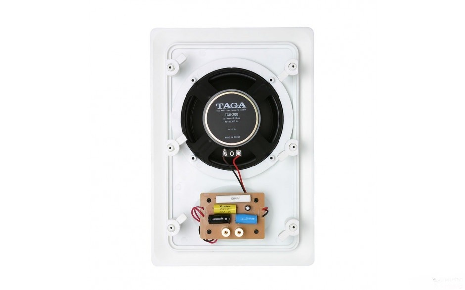 Taga TCW-200 v.3 – вбудована акустична система зразка 2013 року, одягнена в білий пластиковий корпус з габаритами 23,5х34,3х7,6 см. Новинка має двосмугову конструкцію з двома випромінювачами: високочастотним твітером діаметром 25 мм і потужним 165 мм. Насправді поєднання таких компонентів гарантує непросто чітке відтворення широкого діапазону аудіо частот (43–20000 Гц), а й майже повну відсутність спотворень звуку. Потужність Taga TCW-200 v.3 досягає значення 100 Вт.