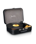 Classic Phono TT-116BK - це портативний програвач вінілових платівок у вигляді валізи. Його легко переносити та використовувати. Відкрийте ретро-кейс і одразу ж слухайте свою улюблену музику на вінілі через вбудовані динаміки. Це справді універсальний програвач. Вам не потрібні окремі стовпчики. Міцний кейс із ручкою забезпечує оптимальний захист програвача.